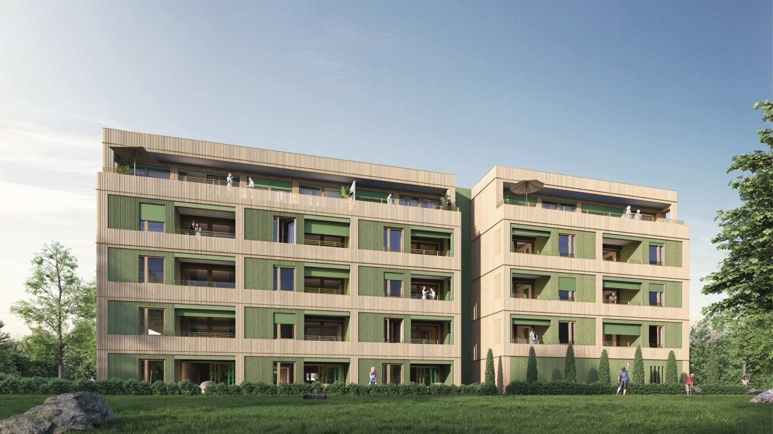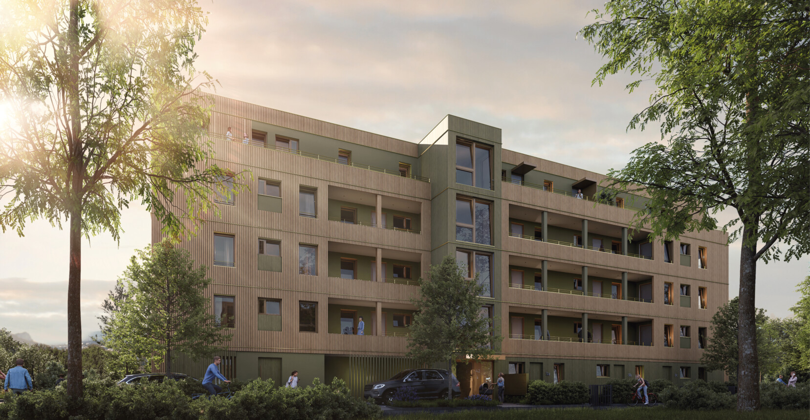 Der Quartiersplatz wird als pulsierender Treffpunkt gestaltet: Eine großzügige, befestigte Fläche lädt zur Außengastronomie ein und bietet Raum für vielfältige Nutzungen – von Wochenmärkten über Quartiersfeste bis hin zu weiteren Veranstaltungen. Ergänzend dazu sorgen quartiersnahe Dienstleistungen, Gastronomie, Einzelhandelsangebote für den täglichen Bedarf sowie soziale und kommunikative Treffpunkte für ein lebendiges und vernetztes Miteinander.